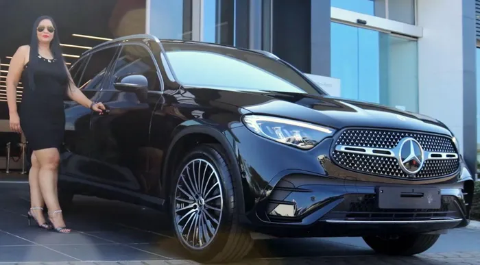 Jolene Naidoo with her R1.3 million GLC220d Mercedes-Benz.