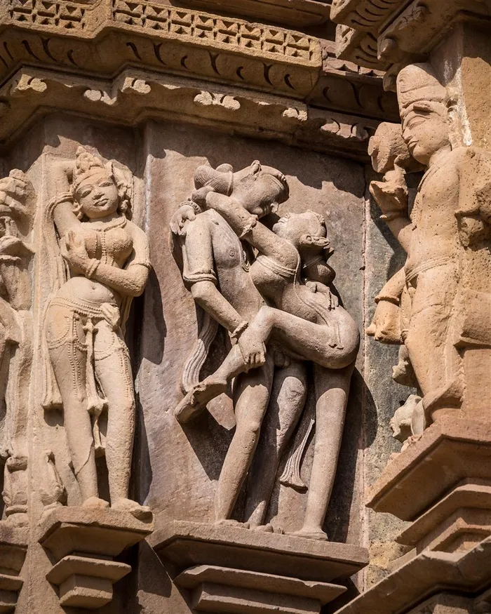 Relief sculpture at the Khajuraho - Jagadambi Temple.