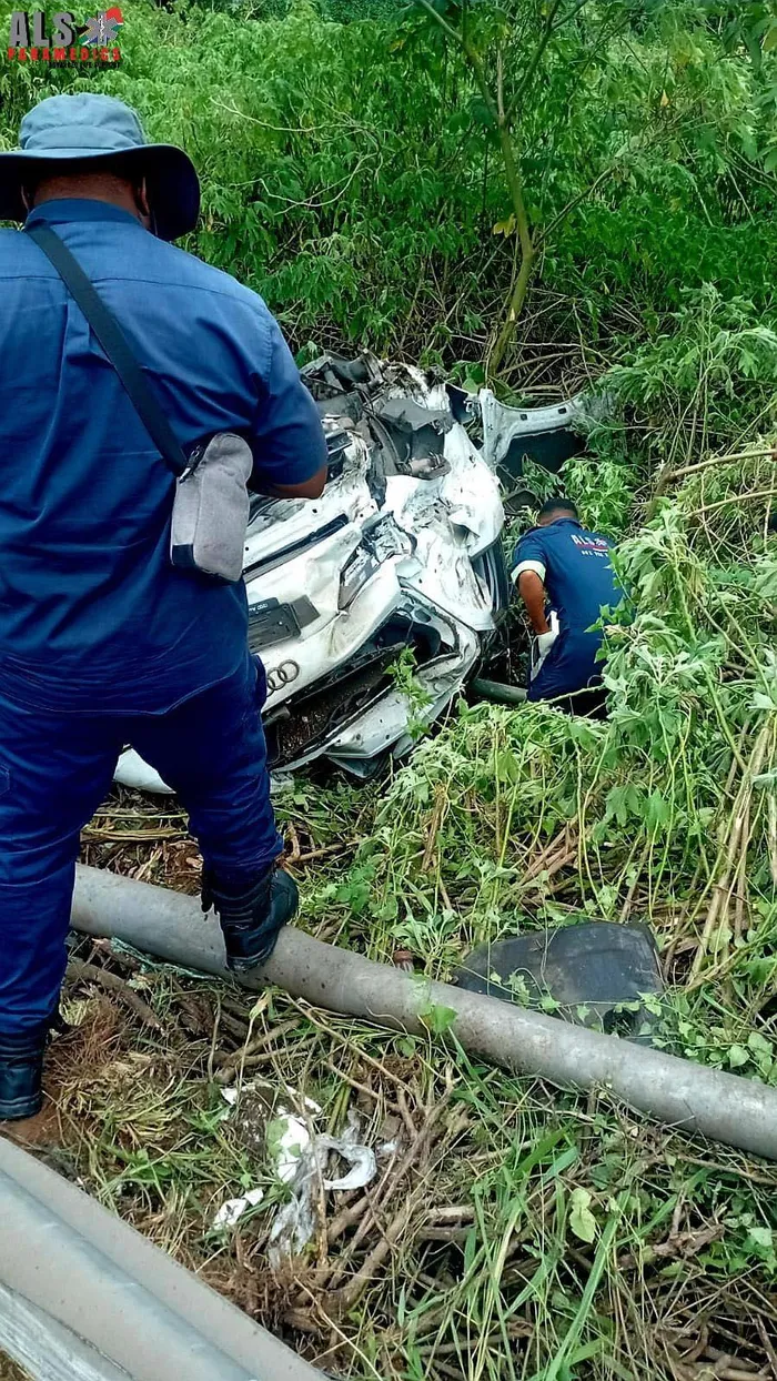The eThekwini Fire Department was immediately called in to assist as paramedics made their way to the wreckage. The light motor vehicle was found overturned, with two occupants trapped inside.