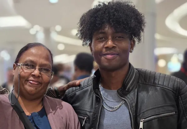 Ricollin Moodley with his mother, Evelyn Moodley.