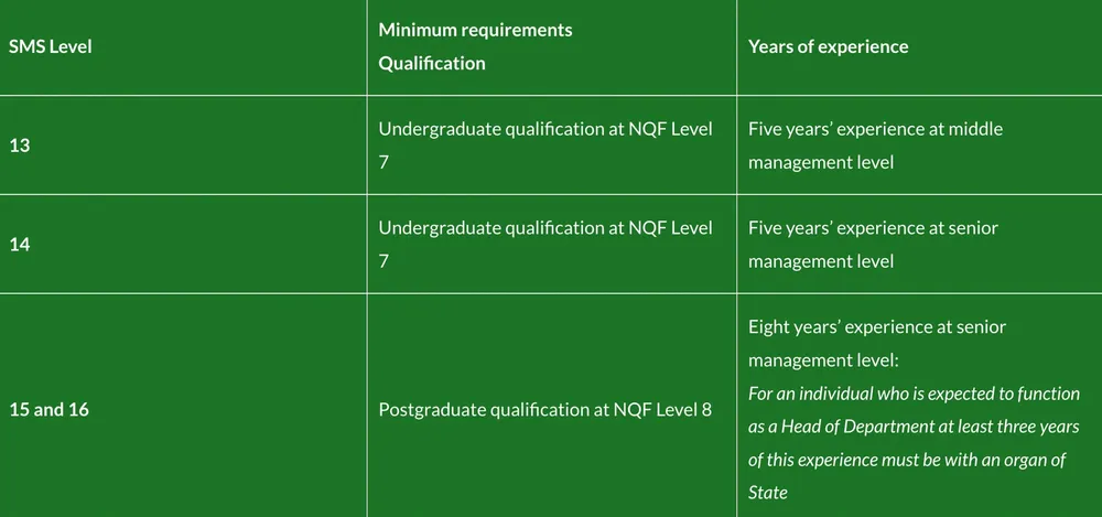 What do you need to be a senior manager in the government? Good question. Participants need an undergraduate qualification (Bachelor’s degree or diploma depending on the job) and five years of middle-management experience. The basic salary for a position at this level is R1 147 609 per annum, which is R95 634 per month.
