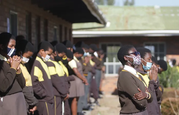 Traumatised pupils pray at Masijabule high school at Swayimane after six of their teachers were injured during a shooting at Wartburg before reaching school. PICTURE :Bongani Mbatha /African News Agency (ANA)