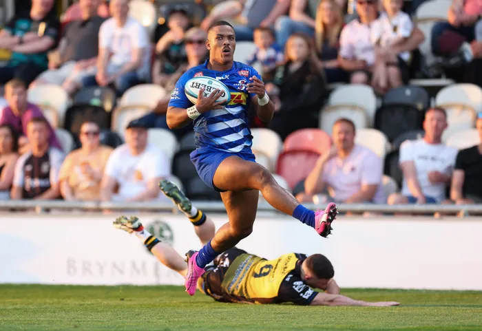 Stormers wing Angelo Davids was in sync with fullback Warrick Gelant, who created both of his tries against the Dragons. Photo: BackpagePix