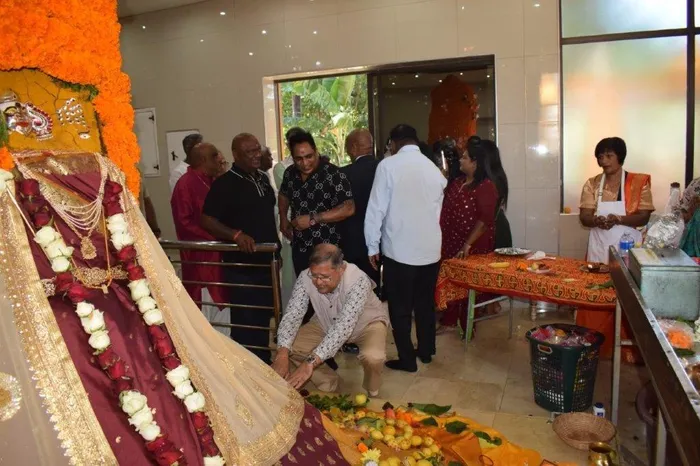 Narend Singh, the Deputy Minister of Forestry, Fisheries and the Environment, kneeling, offered prayer at the Shri Mariammen Temple.
