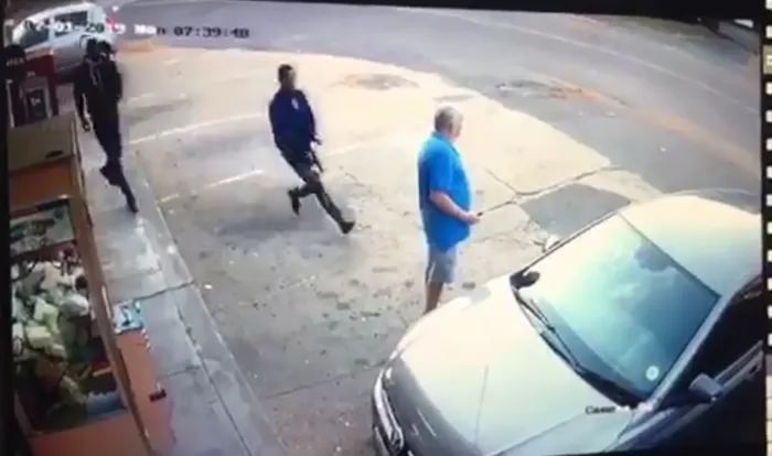 The hijacking happened outside a shopping complex on Brighton Road at 7:40 am and throughout the one minute 38 second CCTV footage of the incident nobody came to his aid.