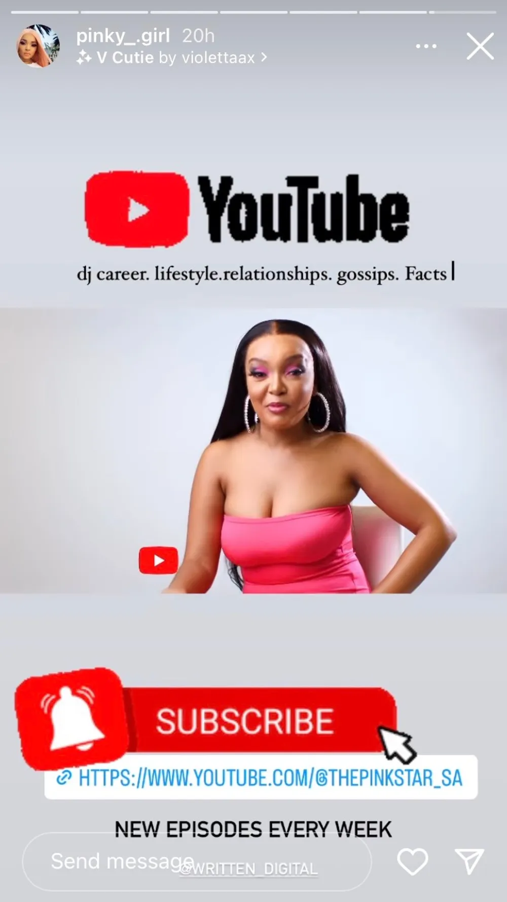In the clip, she introduces herself and touches on her previous relationship as she urges her fans to subscribe. On her channel, Pinky Girl will be talking about her DJ career, lifestyle, relationships, gossip and facts.
