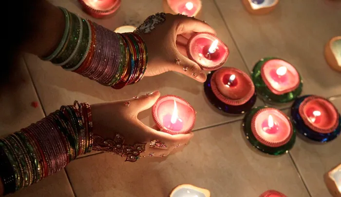 Lamps (diyas) are lit during Diwali to symbolise the triumph of light over darkness or good over evil.