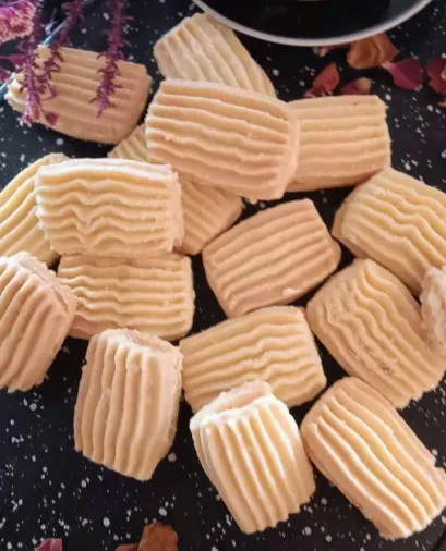 Cream the butter and icing sugar until light and fluffy. Add the almond essence and the dry ingredients. Form a soft dough. Add more flour if needed. Cut and shape accordingly.