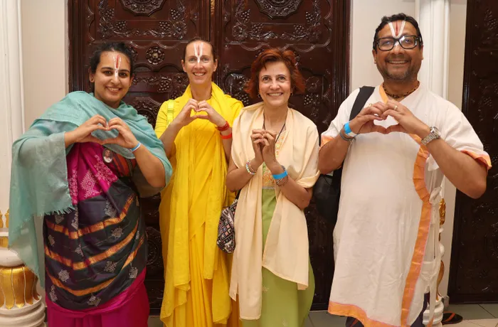 Sheekha Madhavji, from left, Sri Mukha dasi, Pranitha Maharajh and Madhusudanadas.