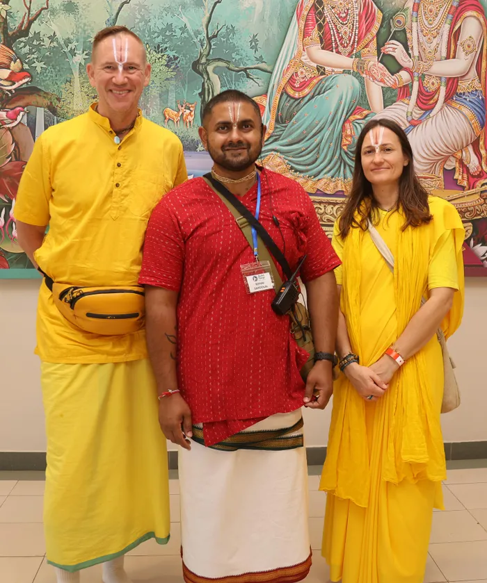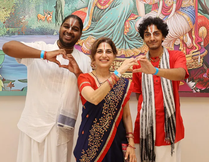 Hariharaananda, from left, Rishav Das and Durlabha Rupini Dasi.