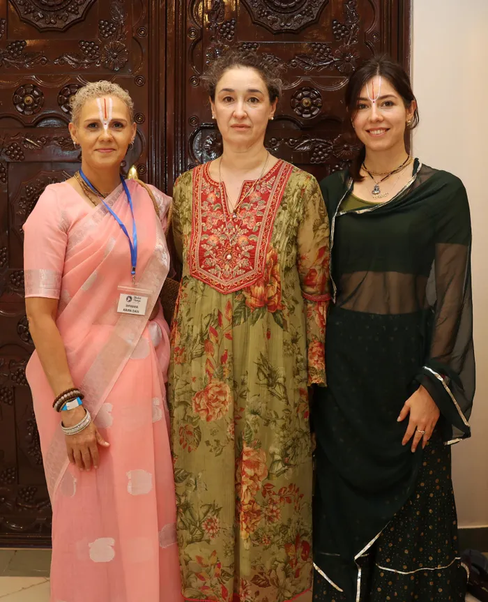 Shyama Kripa Dasi, from left, Aisylu Mallaeva and Shubha dasi.