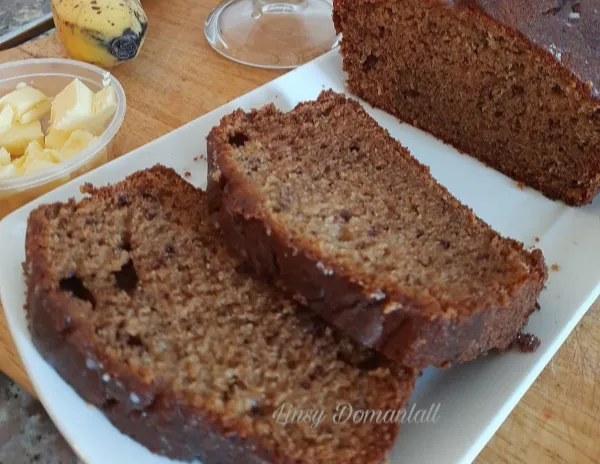 Preheat the oven to 180°C and line a 1kg loaf tin. Mash the bananas in a mixing bowl using an electric mixer. Dissolve the bicarbonate of soda in hot milk and mix with the bananas.