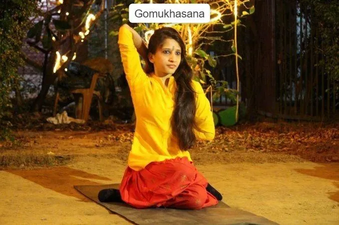 - Gomukhasana: sit comfortably and fold the left leg so the heel rests near the right buttock, then place the right leg over it so the knees are stacked. Raise the right arm overhead and bend it behind the back, bringing the left arm from below to clasp the hands. Keep the spine straight and maintain ujjai breathing to release tension and calm the mind.