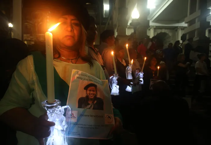 Members of the ACT Foundation gathered last night the 03 September 2019 at the Durban City Hall for a vigil in remembrance of slain UCT student Uyinene Mrwetyana and the hundreds of women and children who are victims of femicide and gender-based violence. Picture: Sibusiso Ndlovu/African News Agency(ANA) Members of the ACT Foundation gathered last night the 03 September 2019 at the Durban City Hall for a vigil in remembrance of slain UCT student Uyinene Mrwetyana and the hundreds of women and children who are victims of femicide and gender-based violence. Picture: Sibusiso Ndlovu/African News Agency(ANA)