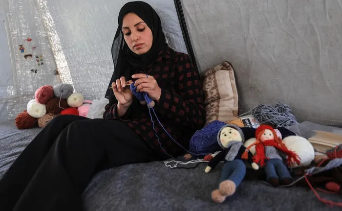 Displaced Palestinian Shireen al-Kurdi made crochet dolls to sell for the Eid-ul-Fitr - at the Bureij refugee camp in the central Gaza Strip. Kurdi, who was displaced from the Jabalia refugee camp with her husband and their five children, is a graduate in Arabic language. The truce in place since October between Israel and Hamas has seen the level of violence drop in Gaza -- even though there are still regular reports of Israeli strikes and deaths.