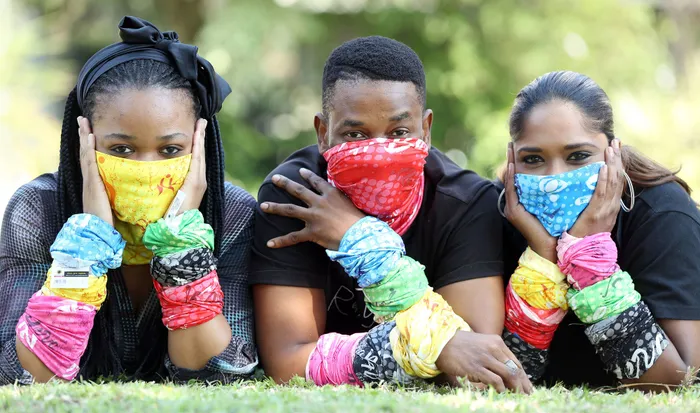 Nockey Mkhize, Xolani Hlongwane, Allison Naidoo from the Sunflower foundation showing off their TOPE designs and colours. Picture: Shelley Kjonstad/African News Agency(ANA)