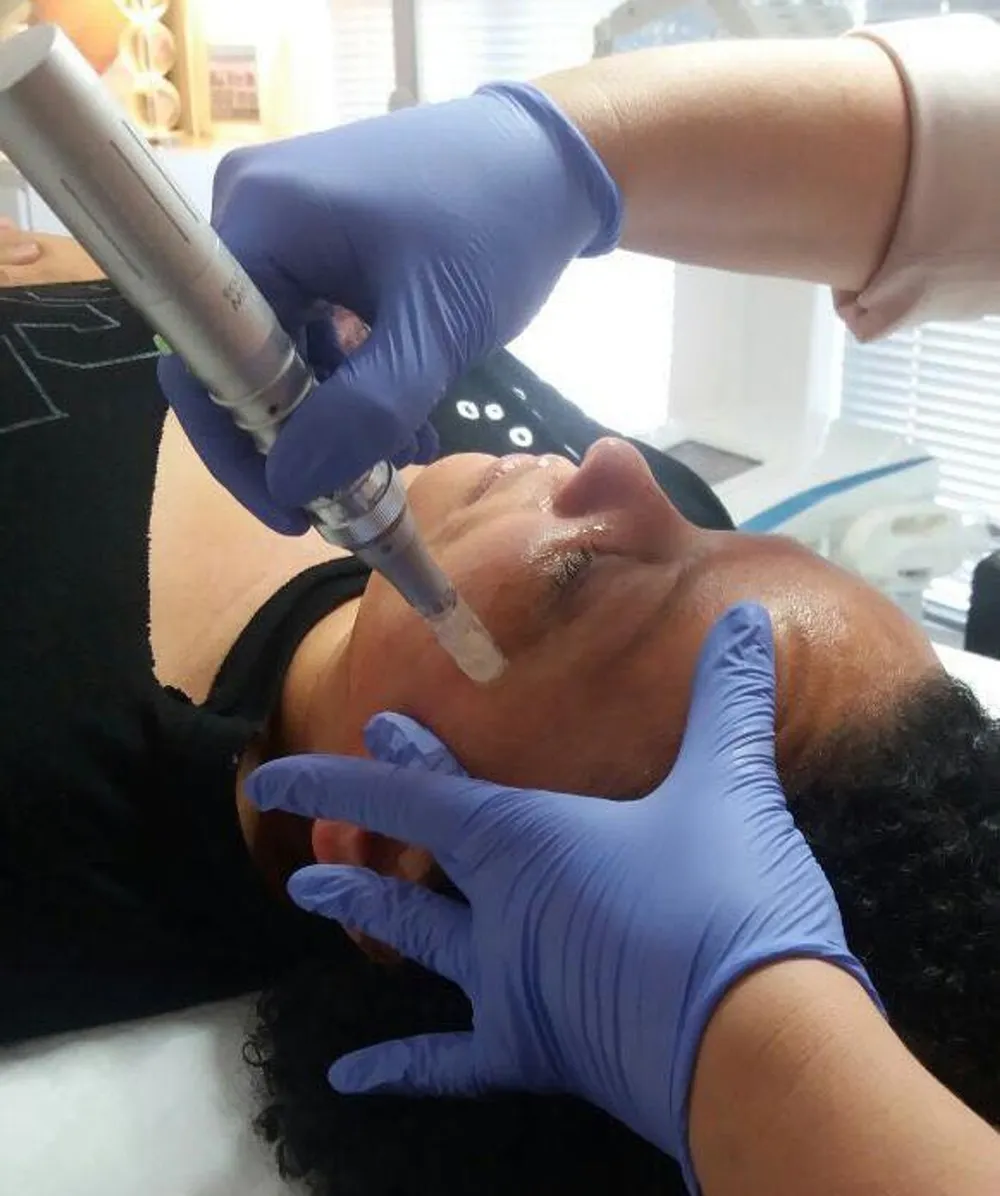 Bowie using the MicroPen on Gerry Cupido’s face.