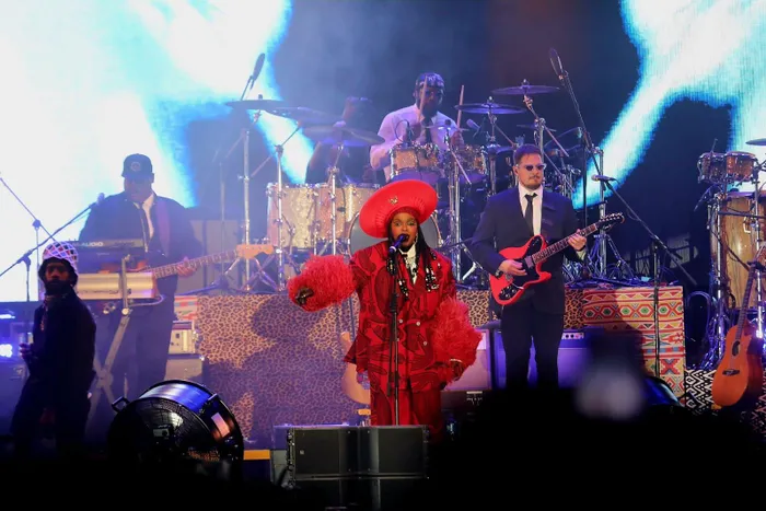 Lauryn Hill wore a custom Thebe Magugu suit for her performance at the DStv Delicious International Food and Music Festival.