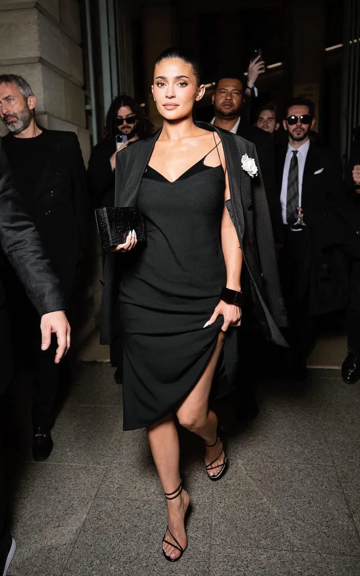 She wore a black silk dress with thin straps, with black heels, and it would never be a complete Kylie Jenner look without shades, as she wore them to attend the show.