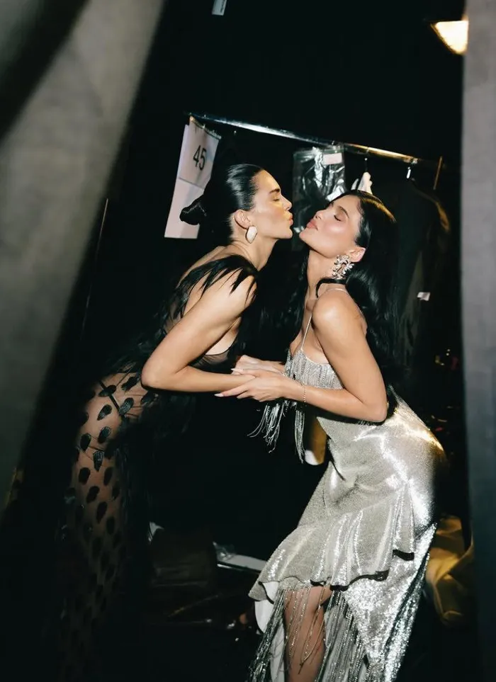 Kylie and Kendall Jenner at the backstage of the Schiaparelli show.