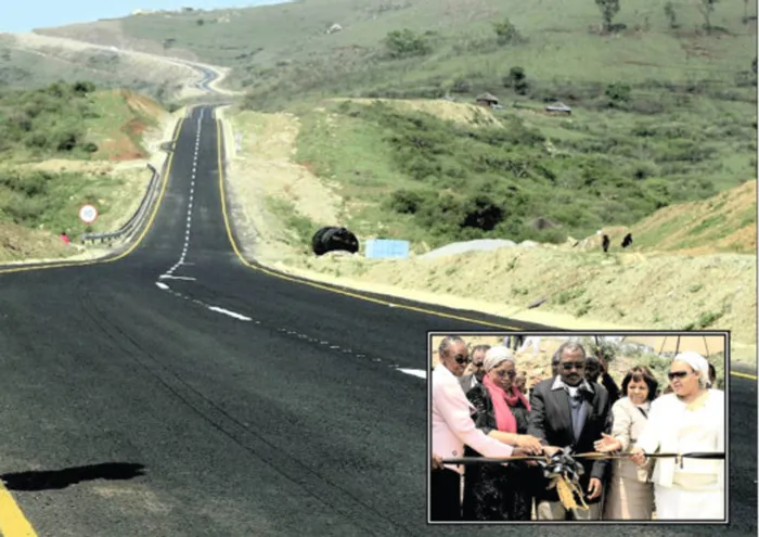 The new road to President Jacob Zuma's village KwaNxamalala in Nkandla has prompted accusations that it is being favoured. INSET: At the opening are, from left, uThungulu district mayor Thembeka Mchunu, first lady MaKhumalo, KZN Transport MEC Willies Mchunu, Nkandla mayor Zandile Mncadi Mpanza, and first lady MaNtuli. The new road to President Jacob Zuma's village KwaNxamalala in Nkandla has prompted accusations that it is being favoured. INSET: At the opening are, from left, uThungulu district mayor Thembeka Mchunu, first lady MaKhumalo, KZN Transport MEC Willies Mchunu, Nkandla mayor Zandile Mncadi Mpanza, and first lady MaNtuli.