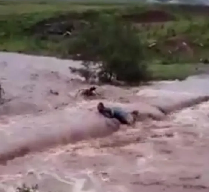 This is after a woman drowned while attempting to cross a river in the Ogunjini area in Ndwedwe reportedly on her way to a funeral. A woman is swept away by rapidly flowing water while crossing a river in the Ogunjini area in Ndwedwe. Picture: Screen grab of video.