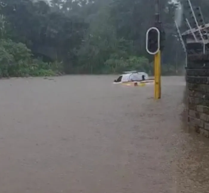 Marshall Security’s Andreas Mathios, who offers community support, said the inclement weather over Durban had caused absolute chaos with emergency services, paramedics and first responders. A vehicle is submerged in water after heavy rainfall resulted in flooding meters away from the Stapleton Road bridge in Pinetown. Picture: Screen grab from video circulating on social media.