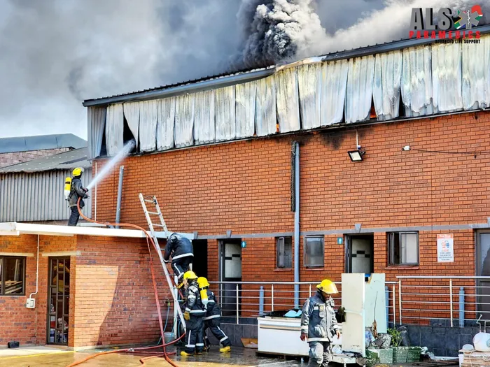 A fire broke out at a warehouse on Peters Road in Springfield Park Business fire on Peters Road in the Springfield Park area north of Durban. Picture: ALS Paramedics