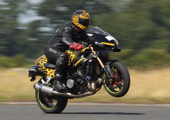 Elvington, North Yorkshire - Motorcycle wheelies are considered hooliganistic behaviour by the general public, but bikers who are able to balance their machine on the back wheel are revered by their peers.