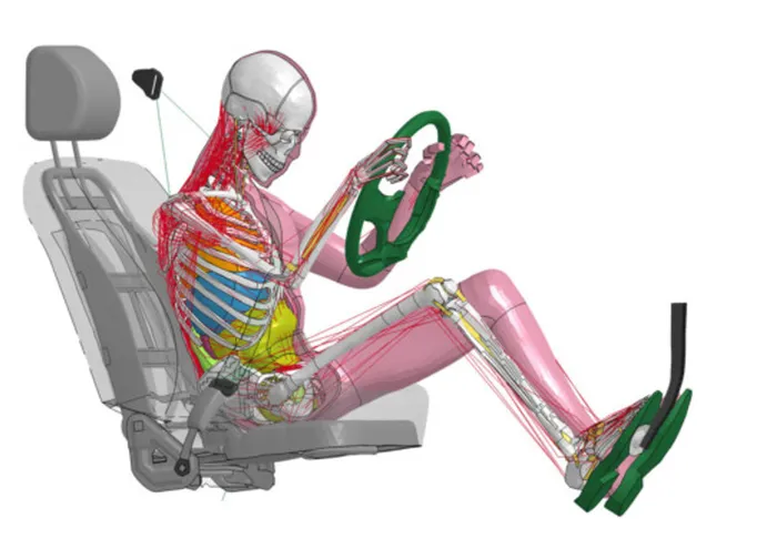 The latest version of Thums adds a muscle-modelling feature that can simulate the body attitude of different vehicle occupants, from relaxed to braced, allowing for more detailed computer analysis of the injuries collisions can cause.