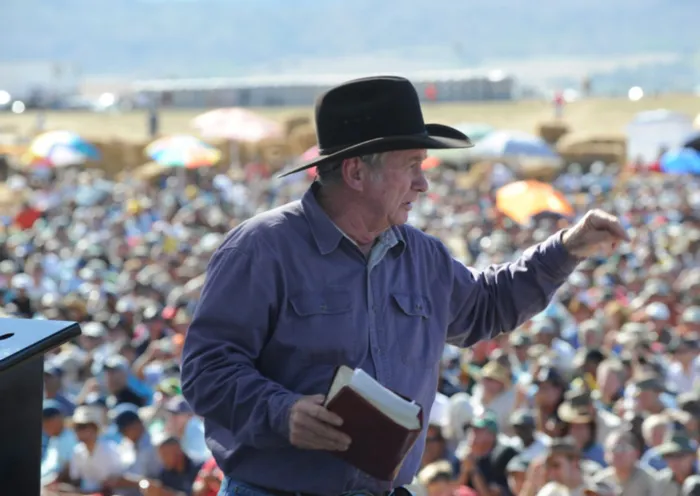 Angus Buchan speaks at the Mighty Men conference in Paarl. Picture: Leon Lestrade Angus Buchan speaks at the Mighty Men conference in Paarl. Picture: Leon Lestrade