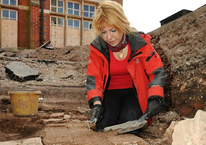 File photo: Karen Ladniuk, from the Richard III society, cleaning a path made from re-used medieval tiles during an excavation of the car park behind council offices in Leicester. File photo: Karen Ladniuk, from the Richard III society, cleaning a path made from re-used medieval tiles during an excavation of the car park behind council offices in Leicester.