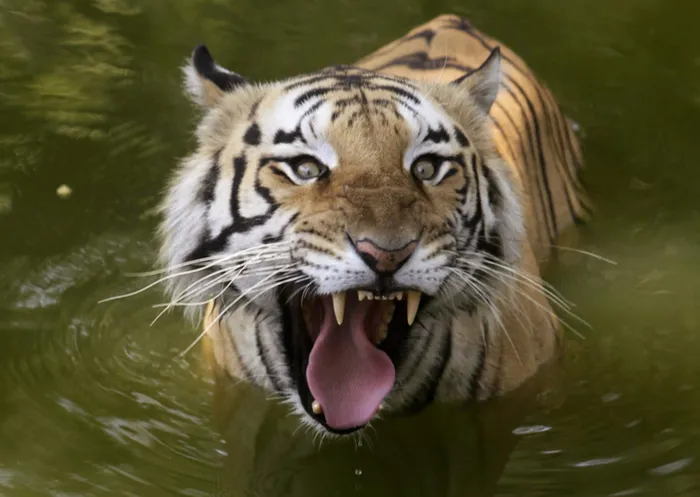 A Royal Bengal tiger cools off in the water at a zoo in Hyderabad, India. Picture: AP Photo/Mahesh Kumar A. A Royal Bengal tiger cools off in the water at a zoo in Hyderabad, India. Picture: AP Photo/Mahesh Kumar A.