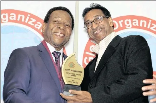 He was one of the recipients of a Community Service Award from GOPIO International. He was presented the award by the late King Goodwill Zwelithini.