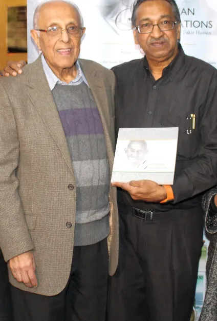 With the late veteran freedom fighter Ahmed Kathrada. Kathrada was the keynote speaker at the launch of Hassen’s book, 101 Gandhian Inspirations, in 2016.