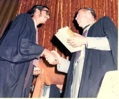 Hassen being presented with the prize for the best final year student at the Transvaal College of Education in 1973.