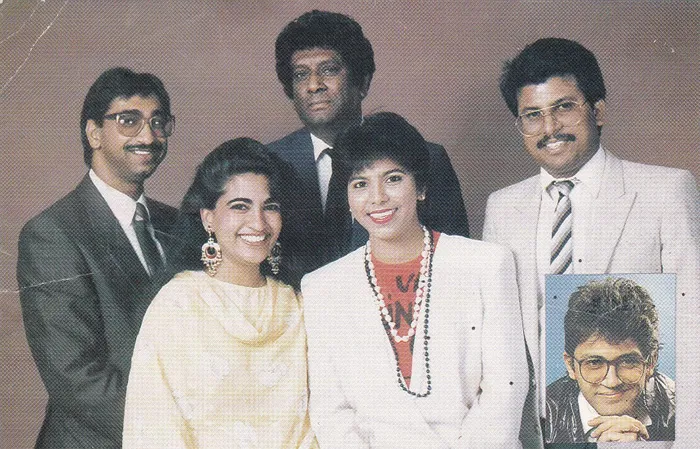 Hassen, left, with some of his colleagues at Radio Lotus. He is seen with, front, Zakia Ahmed and Amitha Anand, and at the back, BK Chinnah and Sergie Naidoo. Insert, Fareed Dockrat.