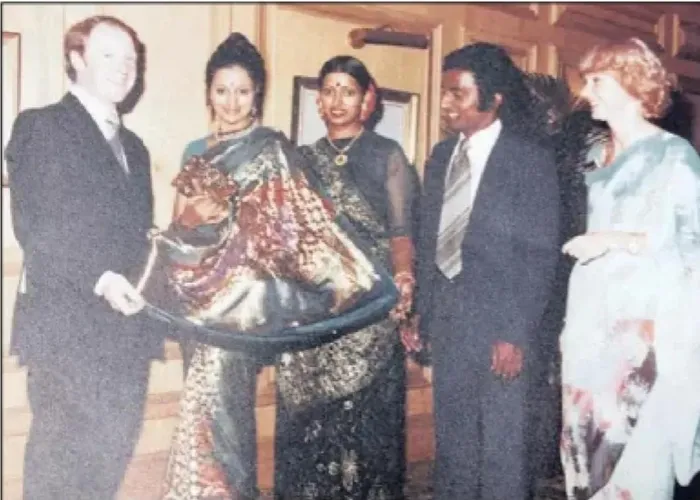 Maharaj, second from left, during her time working as a hostess at the Maharani Hotel’s restaurant, Papadum.