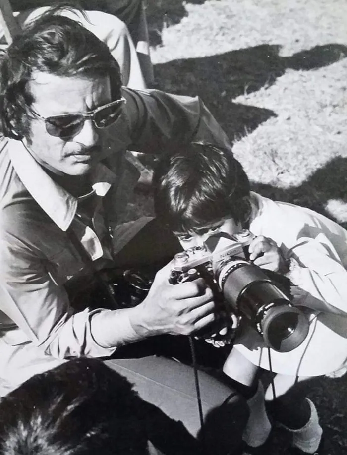 Pillay at age five with Kally at a soccer match taking a peek through the lens of his camera.
