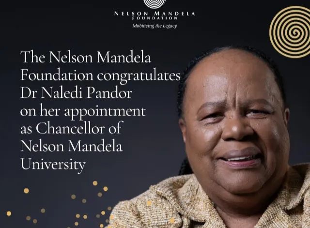 THE Nelson Mandela Foundation has congratulated Dr Naledi Pandor, Chairperson of the Foundation’s Board, on her appointment as Chancellor of Nelson Mandela University (NMU), with effect from April 1.