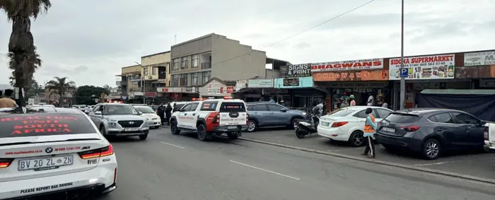 Moments after a group of eight armed suspects robbed Johnny’s Jewellers, located on Gopalall Hurbans Road, on Thursday