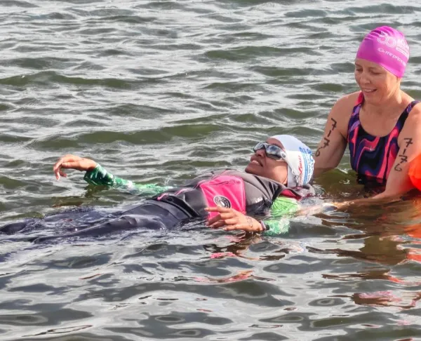 "My trainers help with the physical training, and my family and friends provide invaluable emotional support. This year, I have a total of 10 support swimmers, including family and friends."