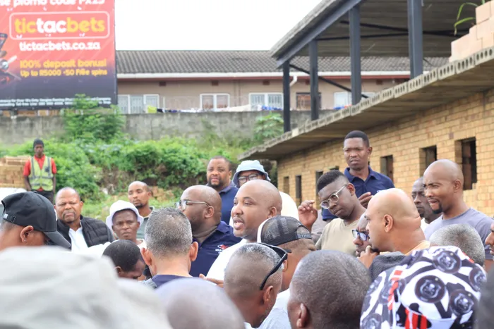 KZN e-hailing Council's Secretary General Sithembiso Khanyezi addressing e-hailing drivers outside SAPS Phoenix station.