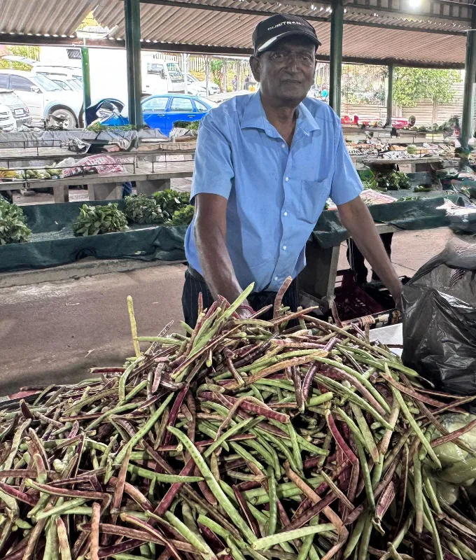Dhunraj Mahadeo, 58, also from Emona, has worked at the market for 45 years and farmed with his family for 55.