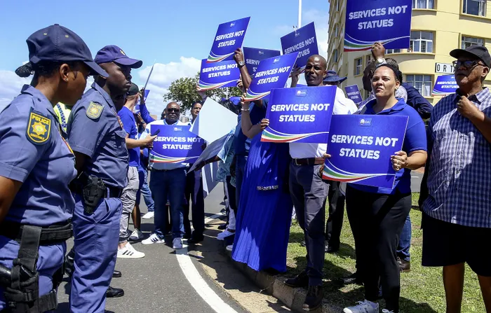 DA protesting at the unveiling of the two statues honouring Nelson Mandela and Oliver Tambo.