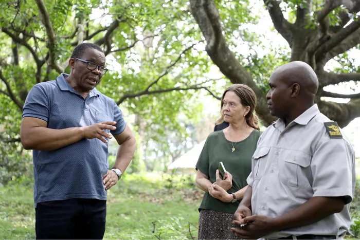 Mayor Cyril Xaba with Jenny Keith and Thanduxolo Nomatshila from Ezemvelo KZN Wildlife.