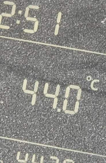 Rae Mitchell described the day as “boiling hot” and posted a photo of his car thermometer showing 44°C.
