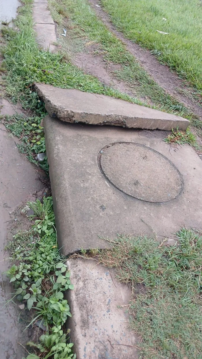 A damaged and blocked manhole
