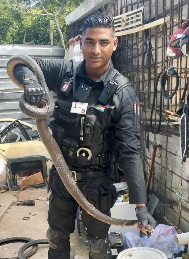 A Rusa response officer, Bryson Bisnath, rushed to the property and began searching the cluttered structure where the snake had disappeared.