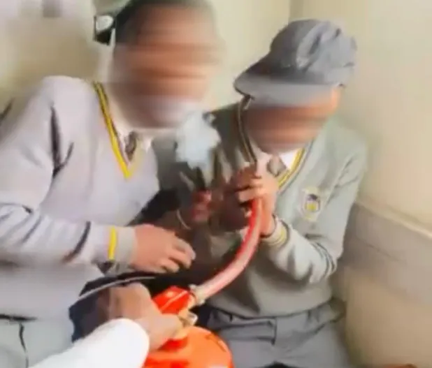 “We are concerned about the video circulating on our social media platforms where young school learners are seen inhaling or smoking something which is coming out of a portable fire extinguisher.